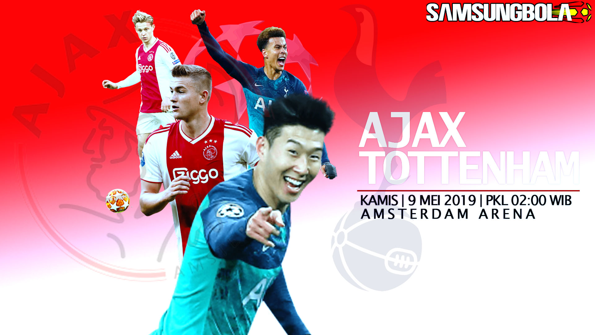 SamsungBola - Ajax vs Tottenham Hotspur 9 Mei 2019 yang akan dilangsungkan di Amsterdam Arena pada hari Kamis, 9 Mei 2019 pada pukul 02:00 Wib. Pada laga pertandingan UEFA Champions League kali ini yang akan mempertemukan kesebelasan Ajax vs Tottenham Hotspur.