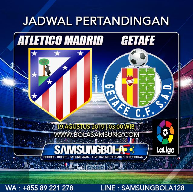 Samsungbola - Prediksi Atletico Madrid vs Getafe 19 Agustus 2019 Pada hari Senin, 19 Agustus 2019 pukul 03:00 waktu indonesia barat akan di adakan laga pertandingan Liga Spanyol antara Atletico Madrid vs Getafe. Pertandingan ini nantinya akan di laksanakan di Stadion Wanda Metropolitano.