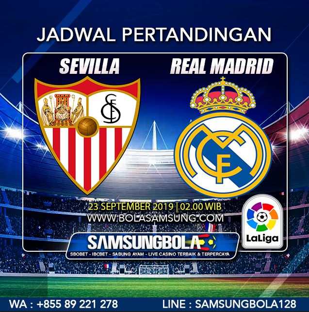 Samsungbola - Prediksi Pertandingan Sevilla VS Real Madrid Pertandingan Liga Spanyol (Laliga) akan mempertemukan dua klub antara Sevilla Melawan Real Madrid. Pertandingan akan di lakukan di Ramon Sanchez-Pizjuan pada hari Senin, 23 September 2019 jam 02 : 00.