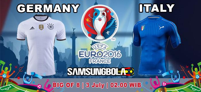 Samsungbola.com - Menampilkan Prediksi Germany vs Italy yang akan berlangsung seru pada laga pertandingan Kompetisi EUFA EURO 2016 ( in France ) yang di gelar pada Hari Minggu, 03 Juli 2016 pukul 02.00 WIB di Stade Matmut-Atlantique (Bordeaux).