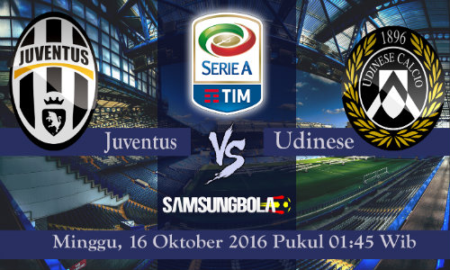 Prediksi Juventus vs Udinese 16 Oktober 2016 - Sang Puncak klasemen sementara Serie A, Juventus akan menghadapi Udinese dalam matchday ke-8 Serie A 2016-2017. Pertemuan ini akan diselenggarakan pada Juventus Stadium pada hari Minggu, Tanggal, 16/10-2016 pukul 01:45 Waktu Indonesia Barat.