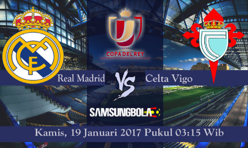 Tim Raksasa Spanyol, Real Madrid akan berjuang meraih satu tiket di babak semifinal Copa Del Rey 2017. Untuk itu mereka harus menghadapi Celta Vigo pada leg pertama perempat Final Copa Del Rey yang diselenggarakan pada Santiago Bernabeu, Hari Kamis, Tanggal, 19 Januari 2017 pukul 03:15 Waktu Indonesia Barat.