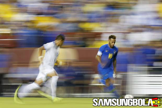 Aksi impresif Neymar diwarnai aksi diving pada menit ke-44. Coba menggiring bola ke kotak penalti, namun dihadang  bek El Salvador Bryan Tamacas.